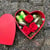 Steinherz mit kleinen gefriergetrockneten Rosen und einem Rosa Porzellan Herzen.