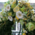 Das Trauergesteck ist ausgarniert mit weissen und gelben Chrisanthemen.